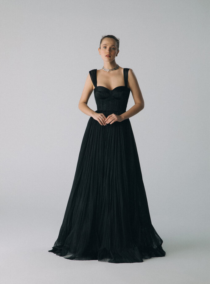 BELDI – Drape Detaylı Boncuk İşlemeli Tül Elbise