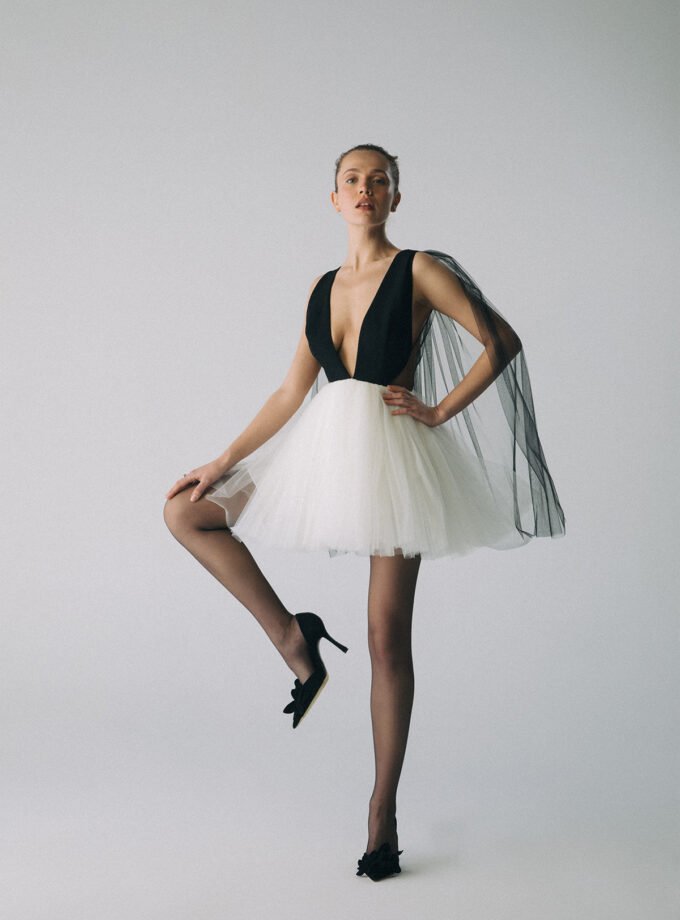 CERI – Derin V Yakalı Pelerin Detaylı Mini Elbise