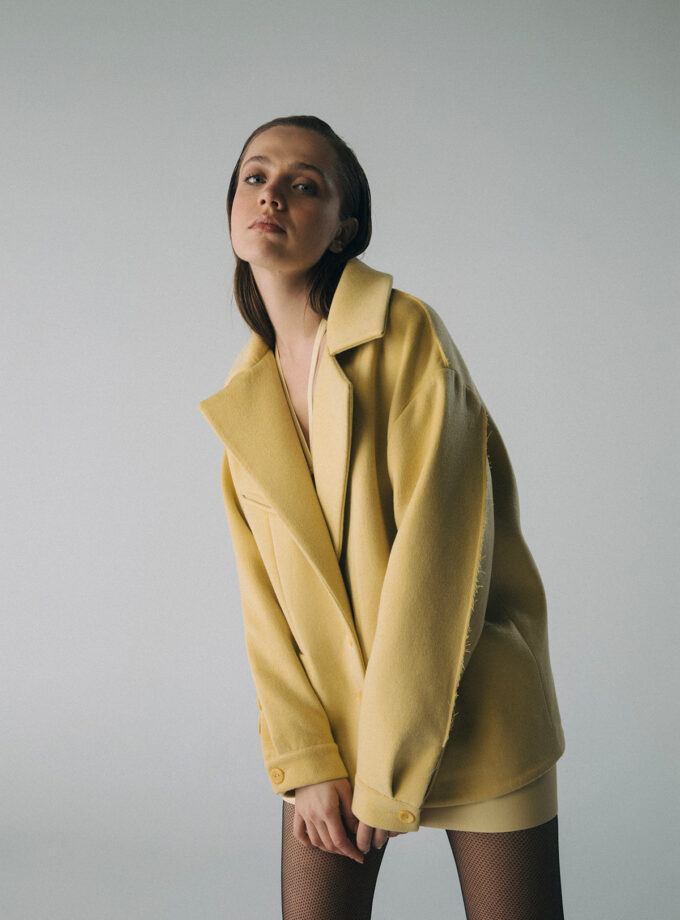 • ELEIA-Geniş Yakalı Omuz ve Kol Detaylı Kaşe Kaban