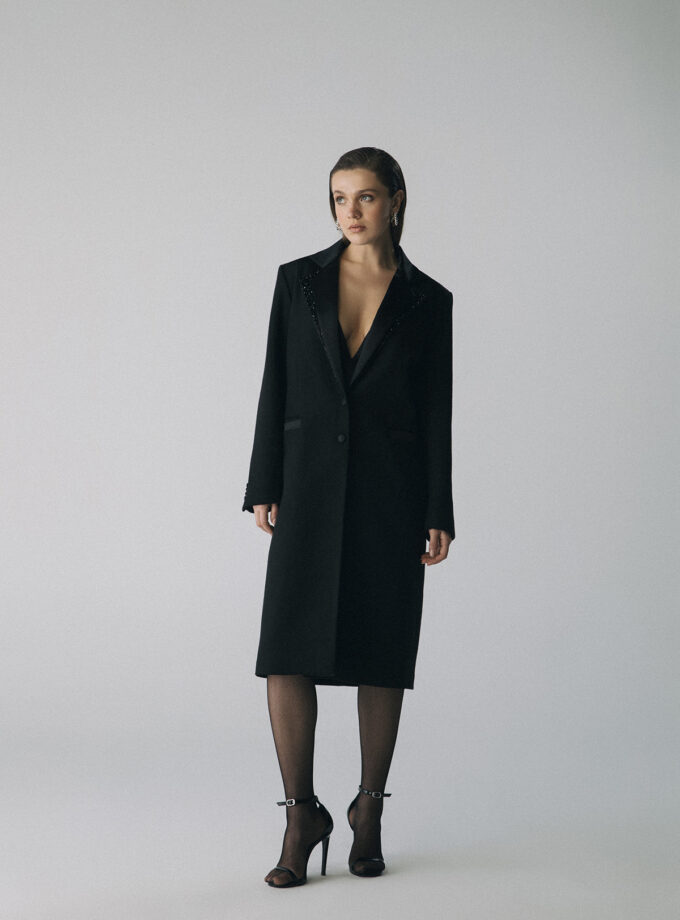 ELEIA – Çıkartılabilir Kristal işleme Yaka’, Kaşe Kaban