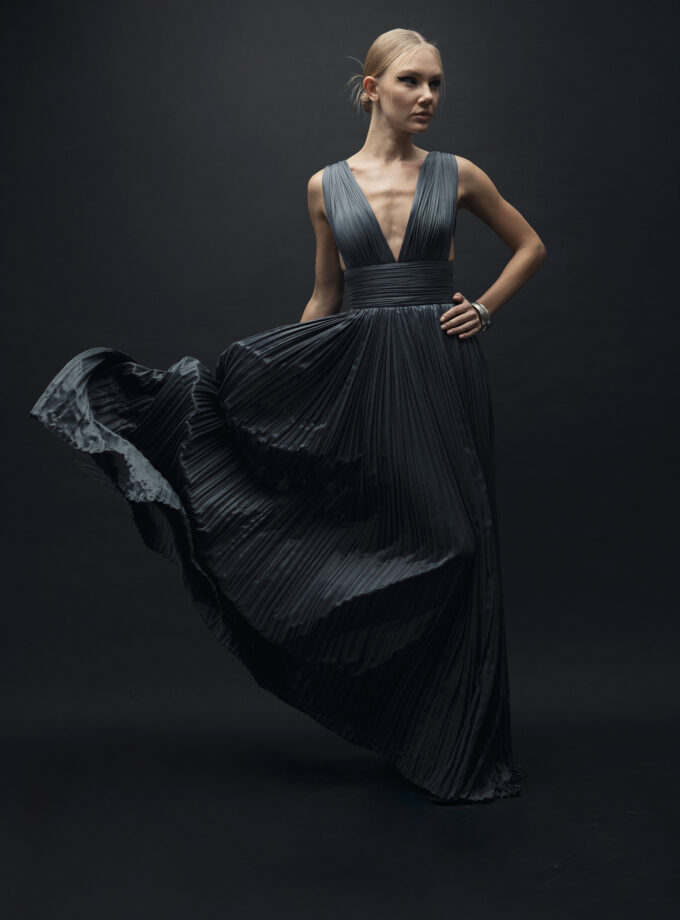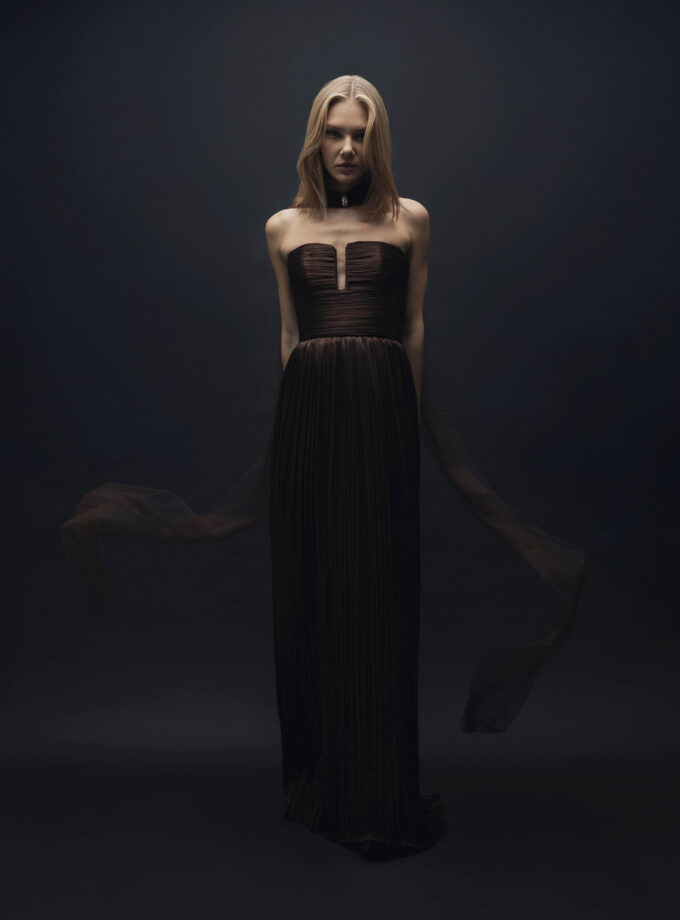 Cendre – İpek Drape Detaylı Uzun Elbise