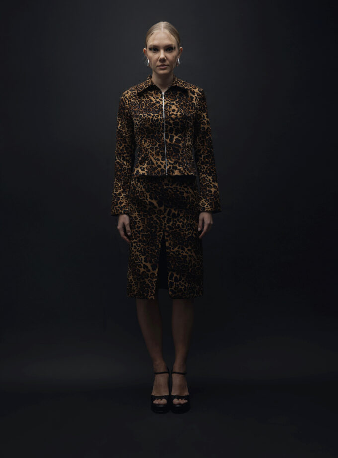 Feline Mirage – Fermuar Detaylı Bele Oturan Leopar Desenli Ceket