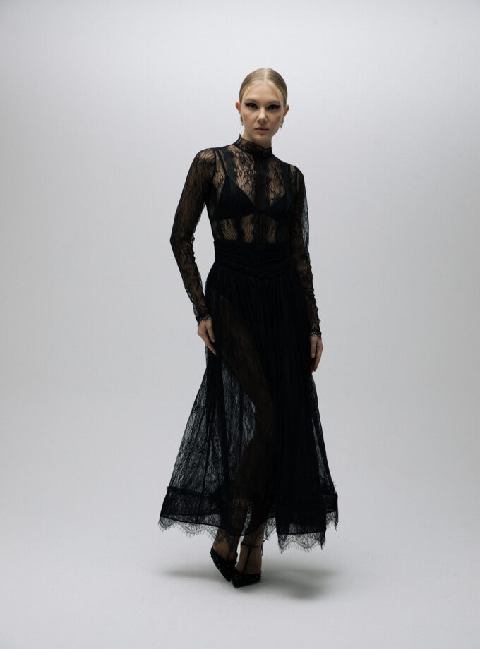 Coal – Dantel Yaka Detaylı Sırt Dekolteli Siyah Elbise