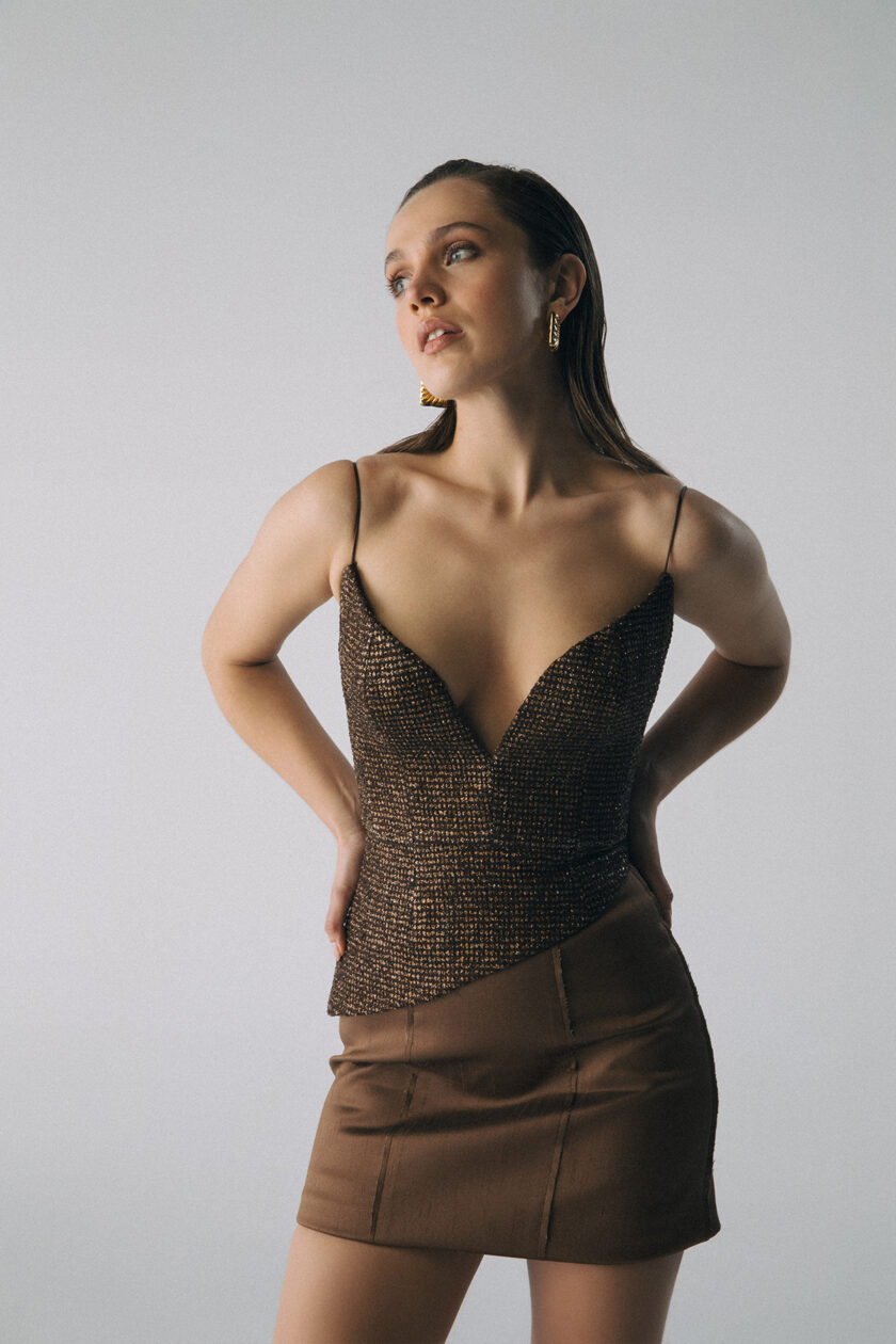INA – Şerit Detaylı Santuk Mini Etek